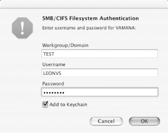 # mount_smbfs '//TEST;leonvs:$$1625a5723293f0710e5faffcfc6@vamana/leonvs' / \Volumes/leonvs